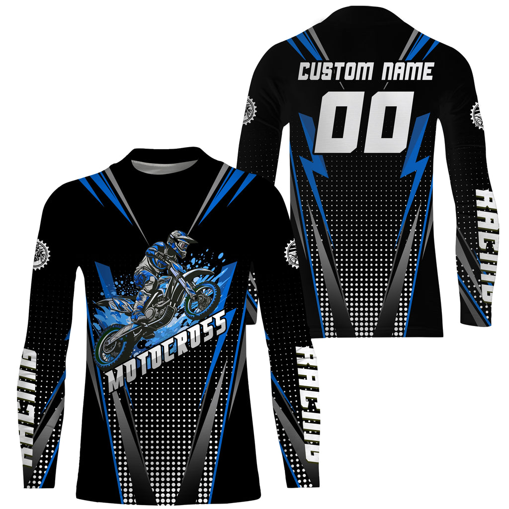 Maxcorners Personalized Blue Motocross Jersey Kid&Adult Upf30+ Dirt Bike Shirt Off-Road Motorcycle Racing MT2709
