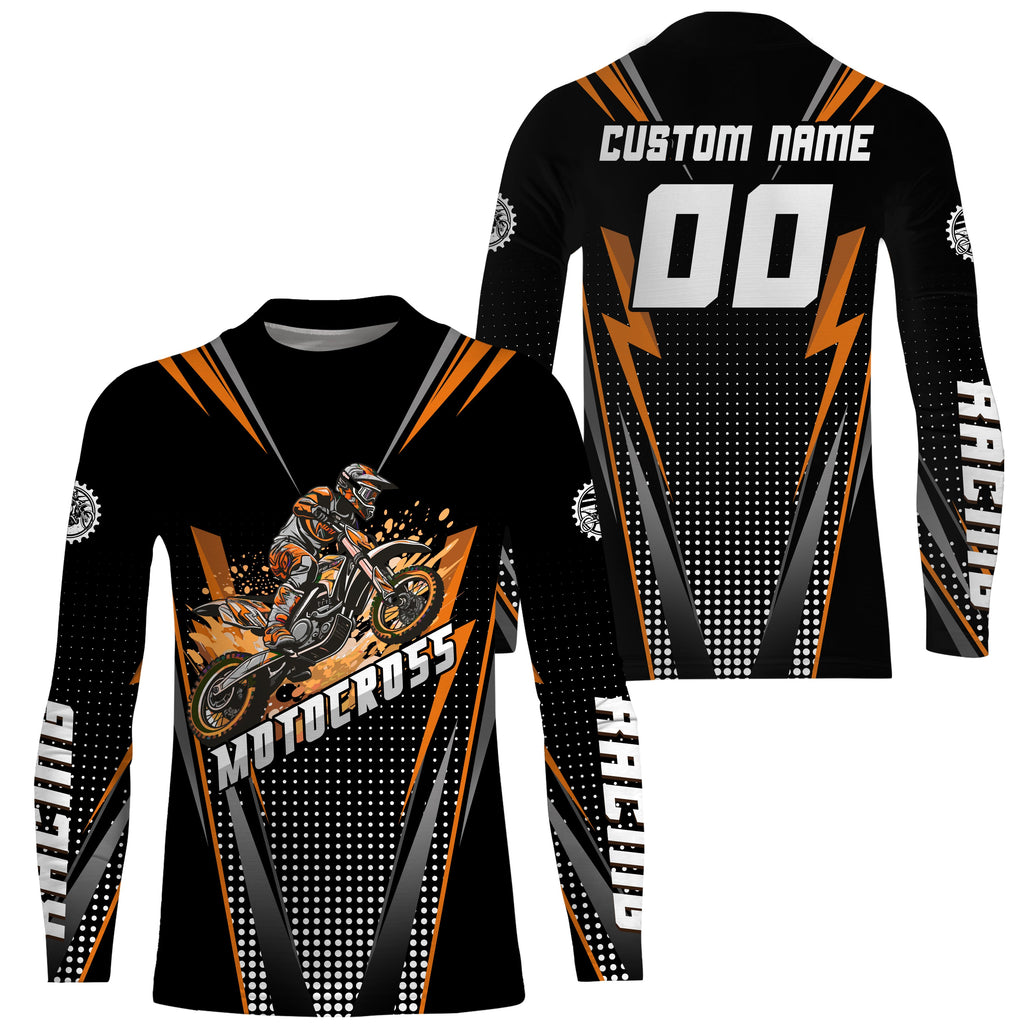 Maxcorners Personalized Orange Motocross Jersey Kid&Adult Upf30+ Dirt Bike Shirt Off-Road Motorcycle Racing MT2709