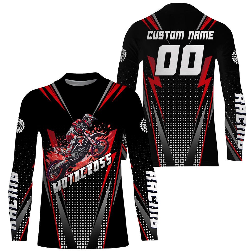 Maxcorners Personalized Red Motocross Jersey Kid&Adult Upf30+ Dirt Bike Shirt Off-Road Motorcycle Racing MT2709