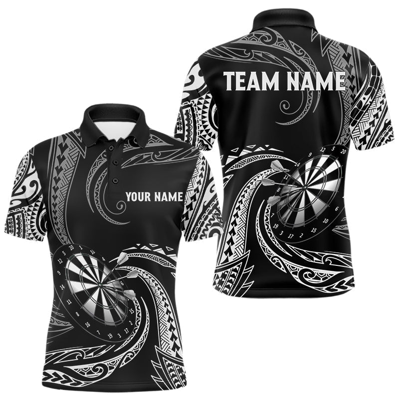 Maxcorners Personalized White Black Tribal Polynesian Mens Dart Shirts Custom Dart Polo & 1/4 Zip Team Jersey TU0411