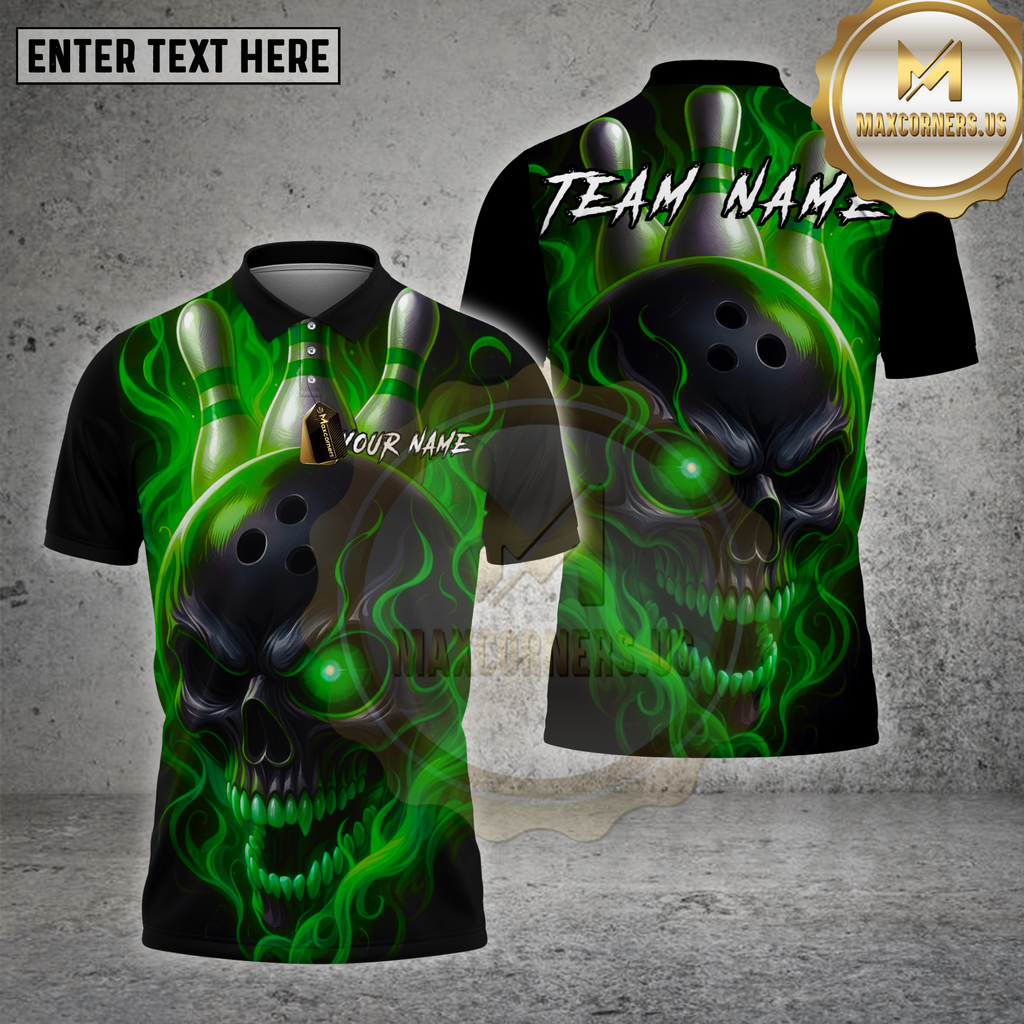 Maxcorners Skull Bowling Shirt Flame Skull Multioptions Personalized Name, Team Name Unisex 3D Shirt (4 Colors)