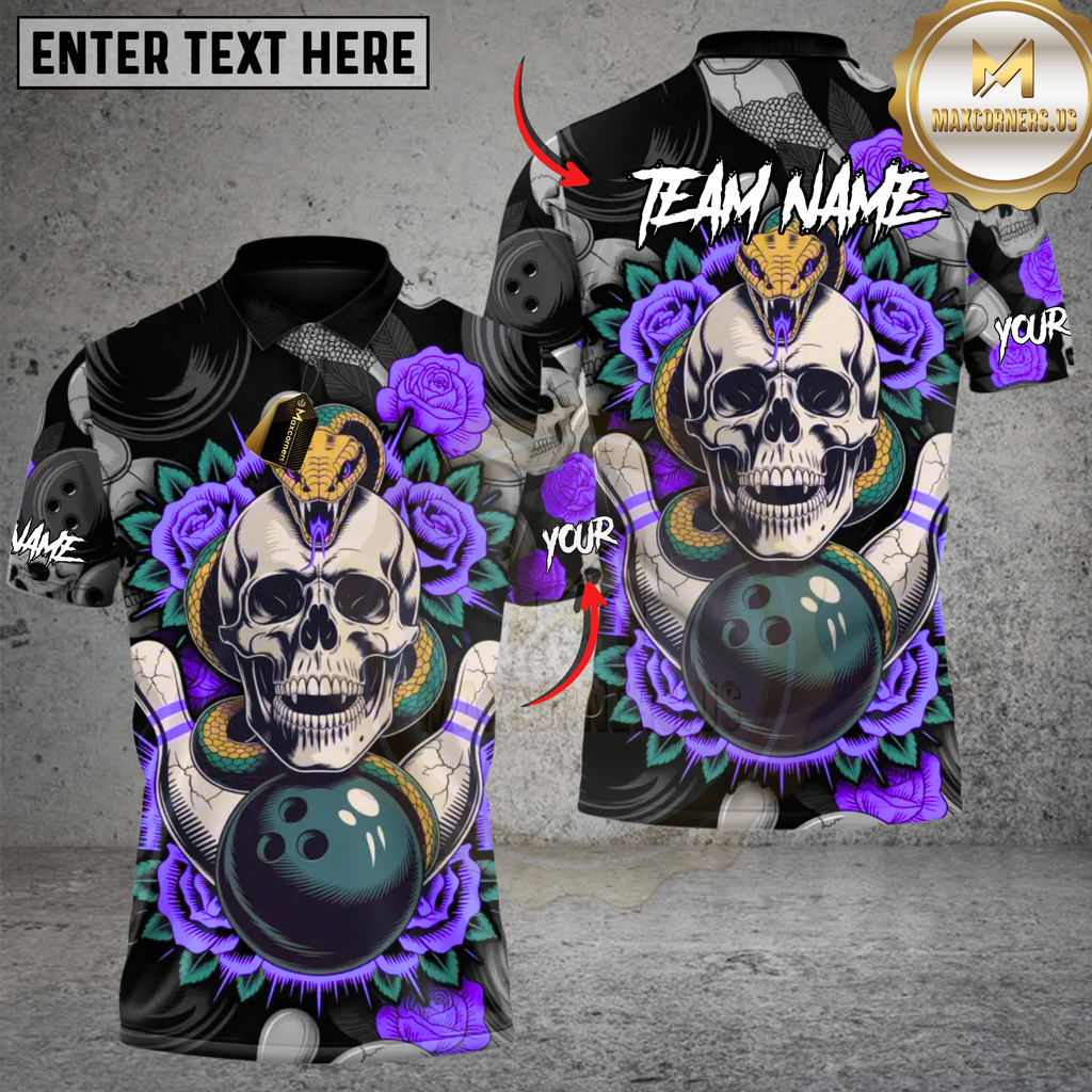 Maxcorners Skull & Roses Bowling Multicolor Customized Name, Team Name 3D Shirts